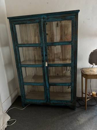 Reclaimed Turquoise Wood Cabinet with Glass Dooors - antiques - by...