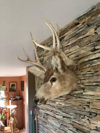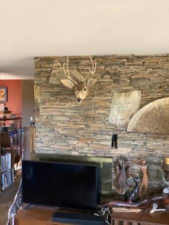 Nice small mule deer head mount. Antler diameter approx. 14 1/2 inches. Ear to ear measures 18 inches. Will also be listing a larger shoulder mount mule deer.