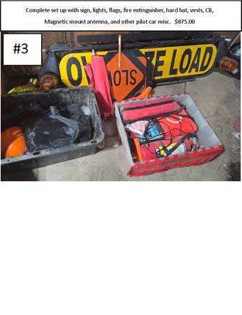 Here are a few items for sale Set up your own pilot car and escort oversize load. 3 different sign set ups. 1. Goes into a receiver hitch $250 2. Roof mounted sign Retails new for about $850 Needs...
